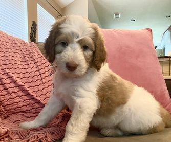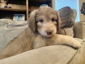 Marshall is a male Assorted Doodle Crosses. Carefully selected as a great representative of his breed, Kristi decided to make him part of their program. Kristi has passed Good Dog’s screening process, which involved a review of their breeding practices, environment, and the mental and physical health of their dogs.