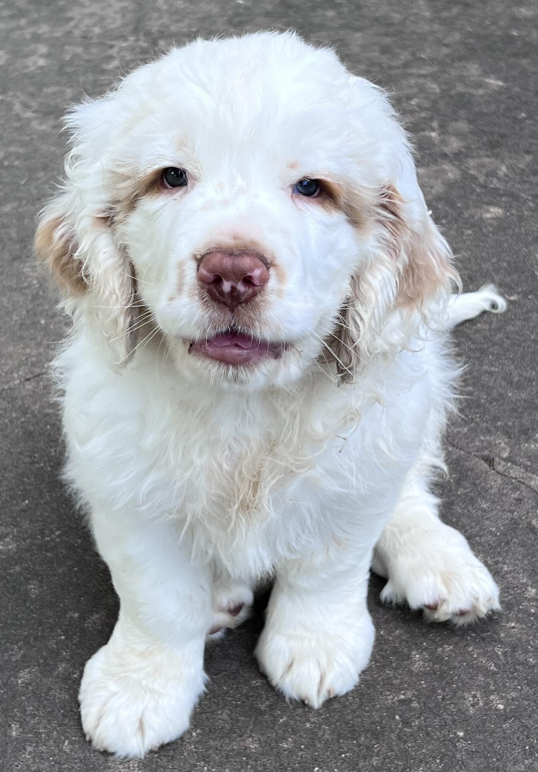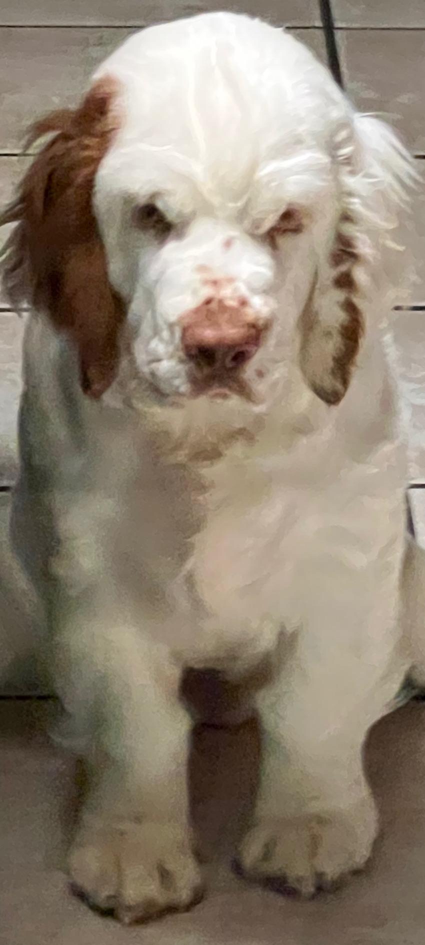 Jazzy is a female Clumber Spaniel. Carefully selected as a great representative of her breed, Lavona decided to make her part of their program. Lavona has passed Good Dog’s screening process, which involved a review of their breeding practices, environment, and the mental and physical health of their dogs.