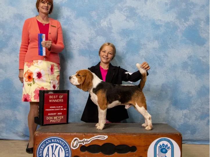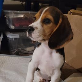 By far the best experience I've had getting a dog. Taylor is polite and provides a lot of pictures; her responses were very quick, the same day and usually within hours. The best part, of course, was our pup! We recieved Rue on 7/16/25, now named Halt. He is smart and the foundations of training seem built in, but is obviously the product of Taylor's hard work with her litters. Potty training already on the right path, calm around new people and animals. Seems to know that his toys are what he should play with, not things like electrical cords (however him knowing this doesn't mean he won't still try, he is a beagle after all). When being naughty we offer one toy and he's back on track. He slept about 6 hrs on our 8.5 hr drive home, thanks to a lot of play the morning of. All this may not sound like a lot, but for a beagle this young I am beyond impressed. Thank you Taylor for working with us and giving our new boy an amazing start of life.