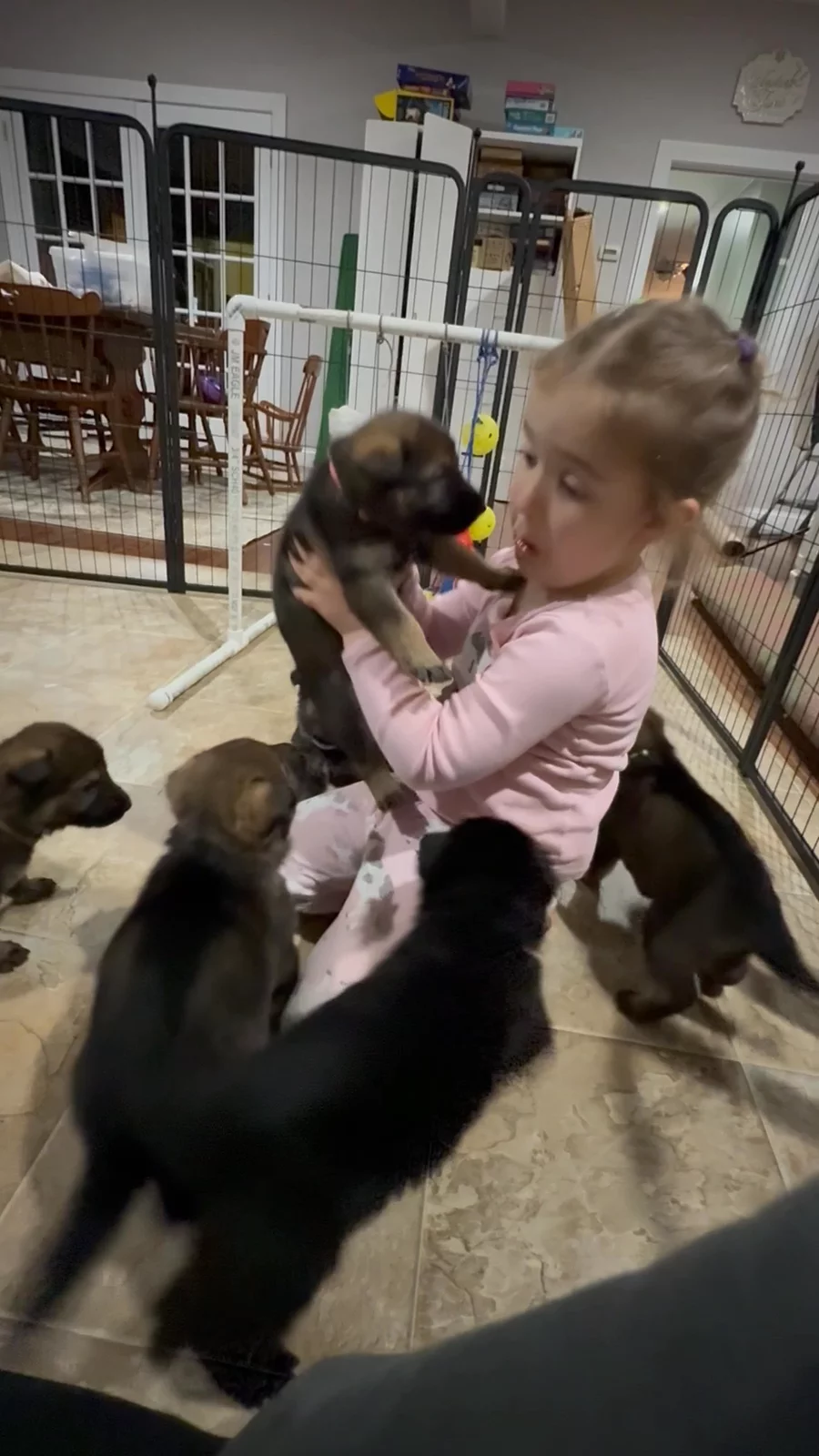Pups have their bigger play area and are socialized with our family daily. Soon we will welcome people with deposits to come in and visit the pups!