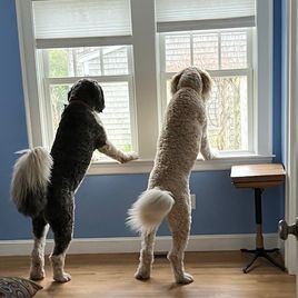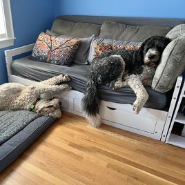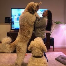 Parker did an amazing job raising our two giant, Uber doodles (Saint Bernard x Standard Poodle). They came to us after 8 weeks of “Puppy Culture” and they are gregarious, well adjusted dogs. We have never had a problem with another dog or human. Both of the dogs are big, goofy, sweet bundles of joy. We are so happy to have gotten Necco (who will be 4) and Dunkin (who will be 3) to be part of our family pack.