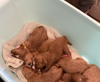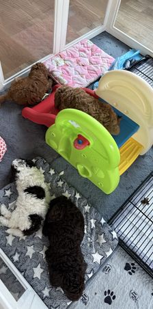 Our puppies are raised in home with our family. They are handled, loved and played with from the moment they are born.