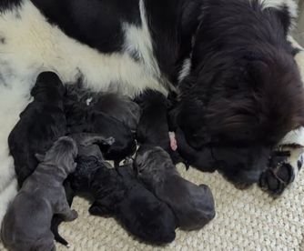 Lorie was so great to work with. You can tell she loves the Newfoundland breed and really cares what happens to the puppies. She was quick to respond when I had questions regarding the process or my puppy and she always kept me up to date. I am very pleased I found her and Umfleet Farms to make this all happen.