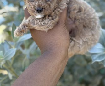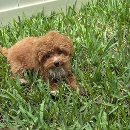 Nutella is a brown tiny toy poodle . She comes from straight champion linage on both of her parents side with a beautiful pedigree . She is small and sweet , and loves to be around kid's. She is one of my daughter’s best friend.
