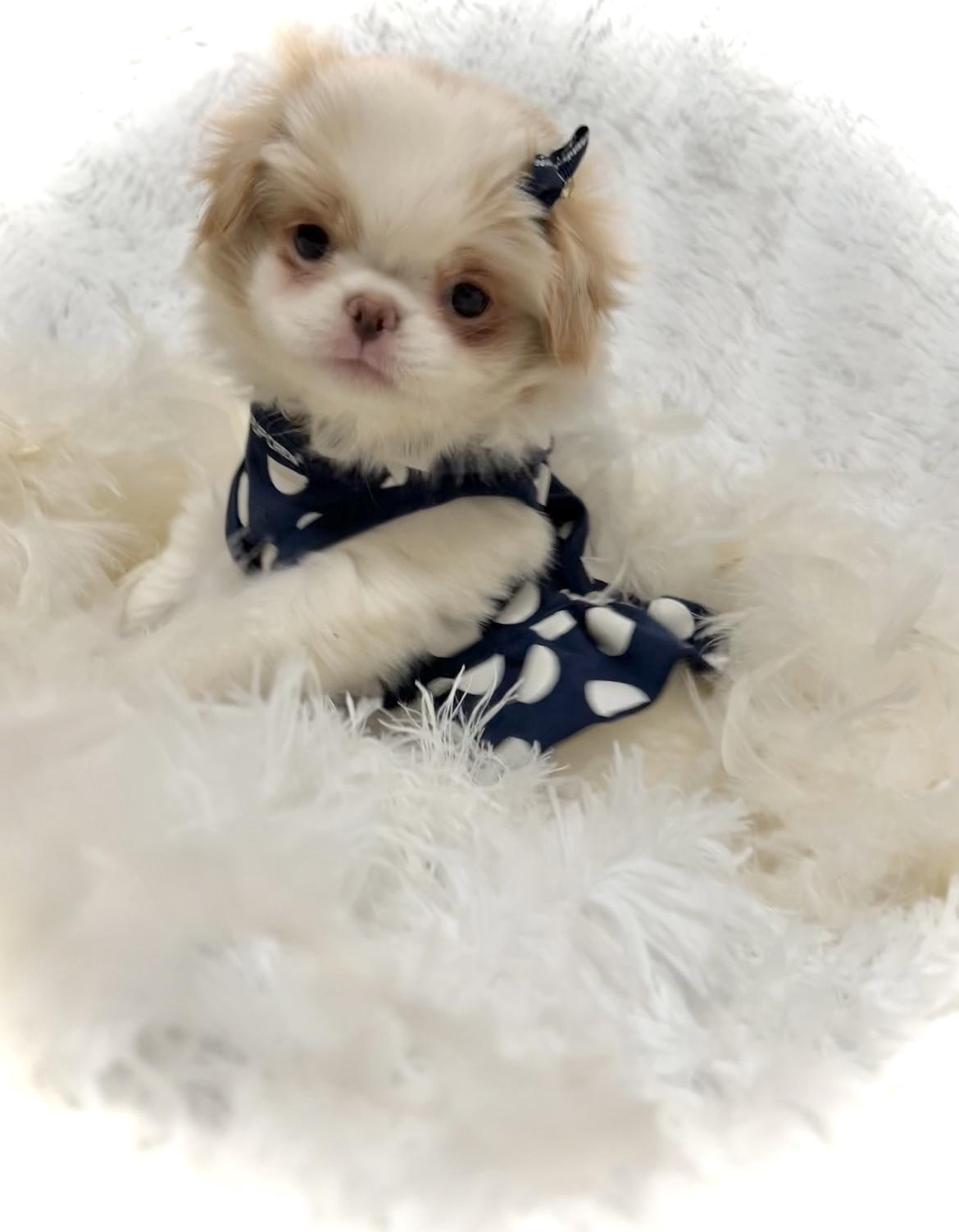 Tennessee is a male Japanese Chin. Carefully selected as a great representative of his breed, Shelly decided to make him part of their program. Shelly has passed Good Dog’s screening process, which involved a review of their breeding practices, environment, and the mental and physical health of their dogs.