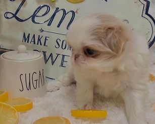 Lemon Chiffon is a female Japanese Chin. Carefully selected as a great representative of her breed, Shelly decided to make her part of their program. Shelly has passed Good Dog’s screening process, which involved a review of their breeding practices, environment, and the mental and physical health of their dogs.