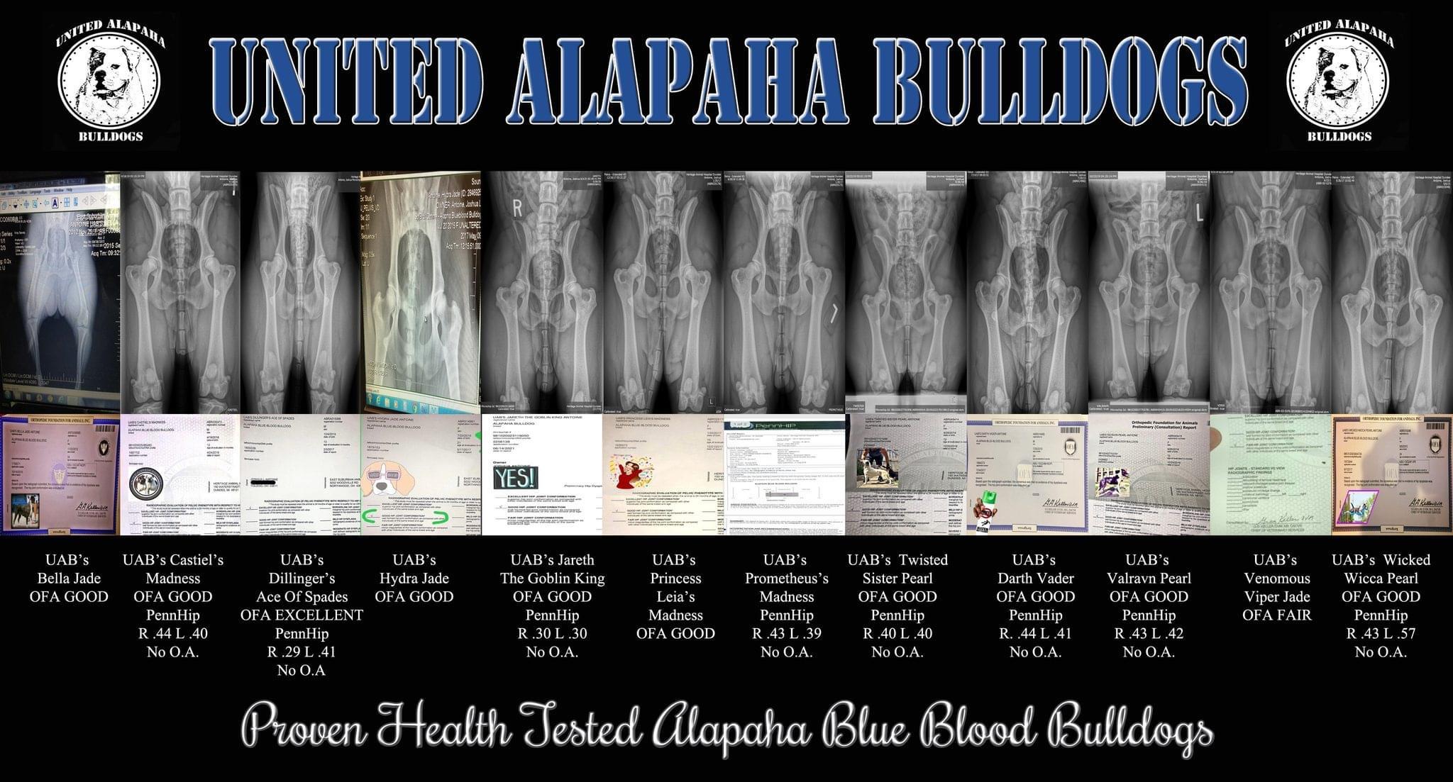 We are over double digits of Alapaha Blue Blood Bulldogs thoroughly health tested starting with the most important, HIPS. An accomplishment that separates us from others in the breed. We will continue to strive to breed better than what we have. Anyone can breed a canine but trying to lock in a healthy genotype, with the right type of temperament is one of the hardest to do when breeding bulldogs.