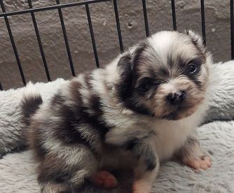 Our puppies include black, white, and blue merle. Colors will vary depending on the parent dogs.