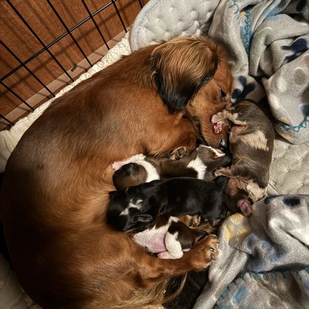 We started breeding because we absolutely adore everything about mini dachshunds and want to share their larger than life personalities with others. All of our dogs are health and genetically tested, and our dogs are cherished members of our family.