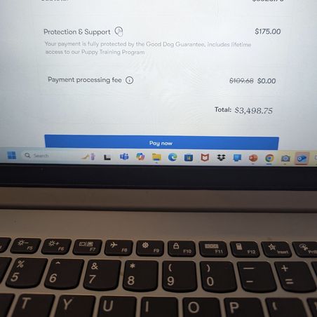 Puppy prices include a $500 non-refundable deposit and between $2,500 - $3,000 final payment, before taxes & fees.