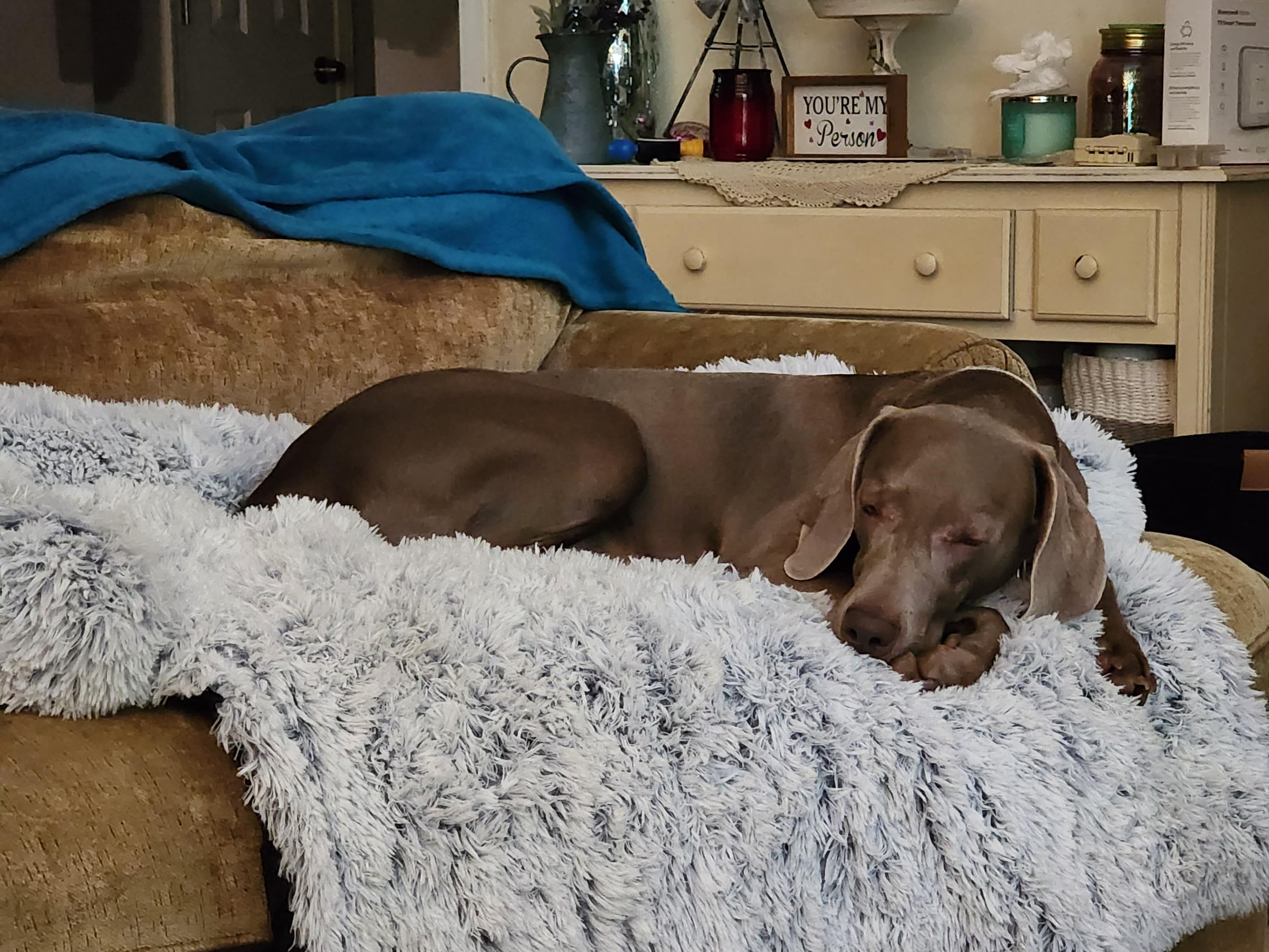 Rora is a female Weimaraner about 7 years old. Carefully selected as a great representative of her breed, Natasha decided to make her part of their program. Natasha has passed Good Dog’s screening process, which involved a review of their breeding practices, environment, and the mental and physical health of their dogs.