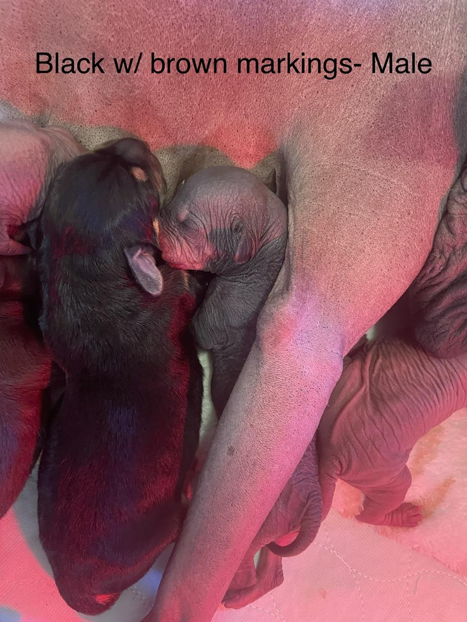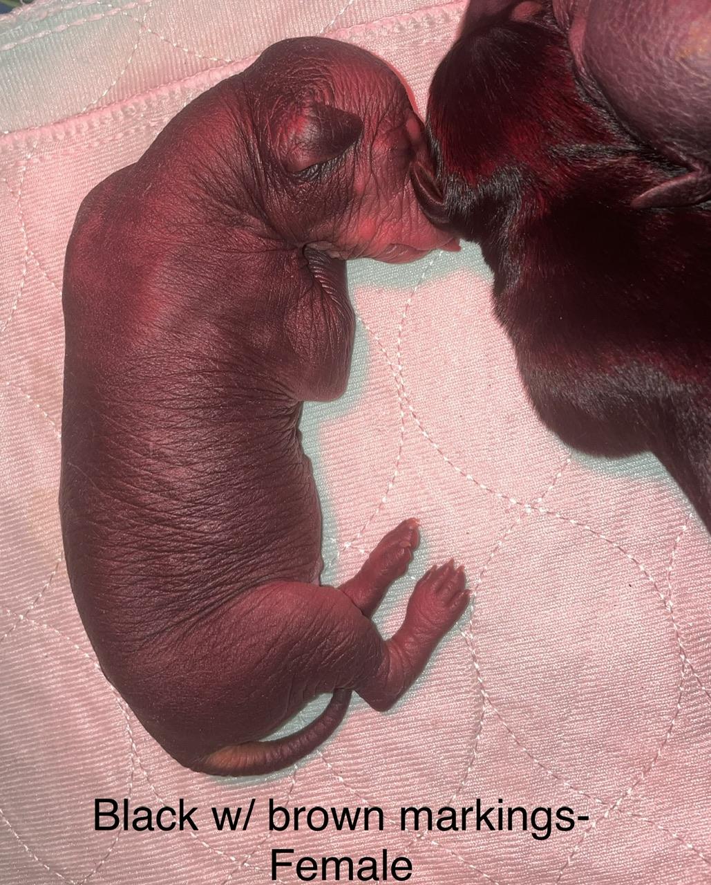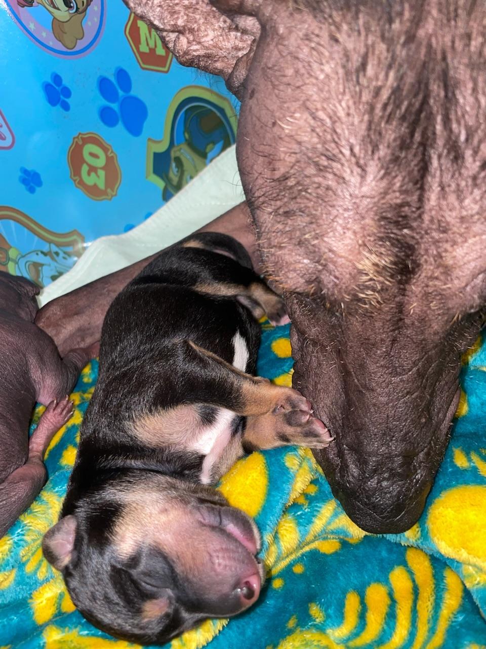 Our puppies have hairless coats. Coat types may vary depending on the parent dogs.