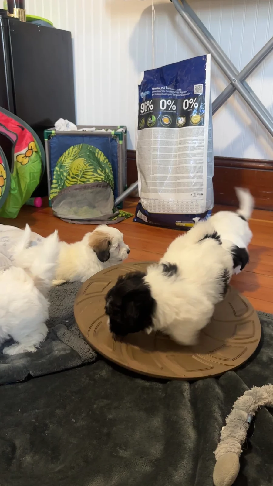 Puppies gaining confidence on the wobble board