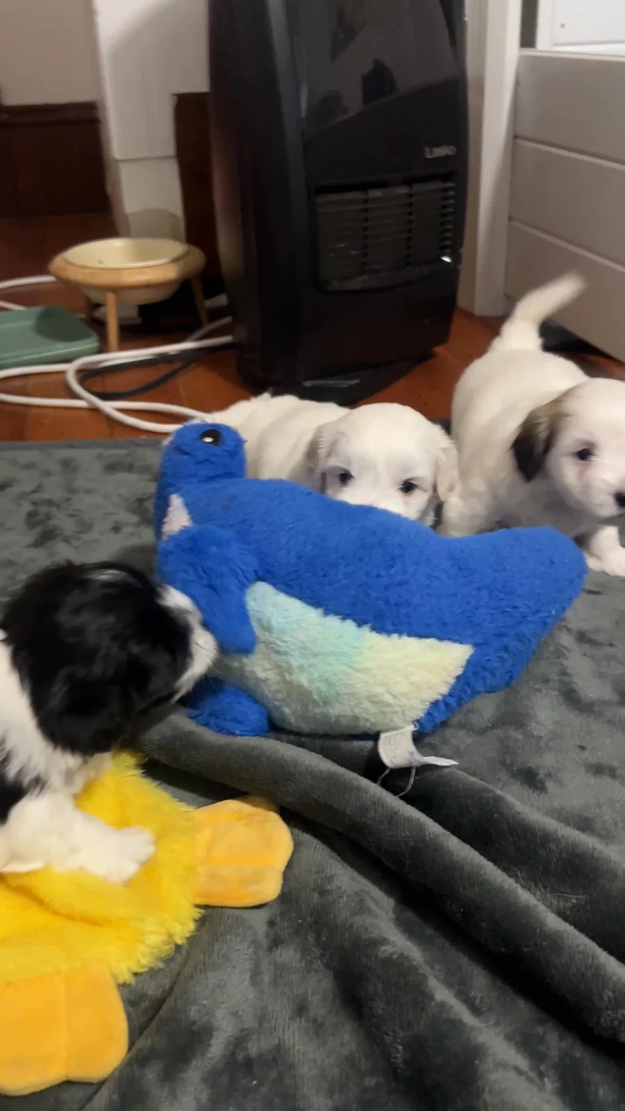 Puppies are big enough for toys and boy are they enjoying them!