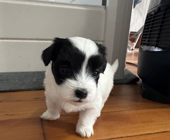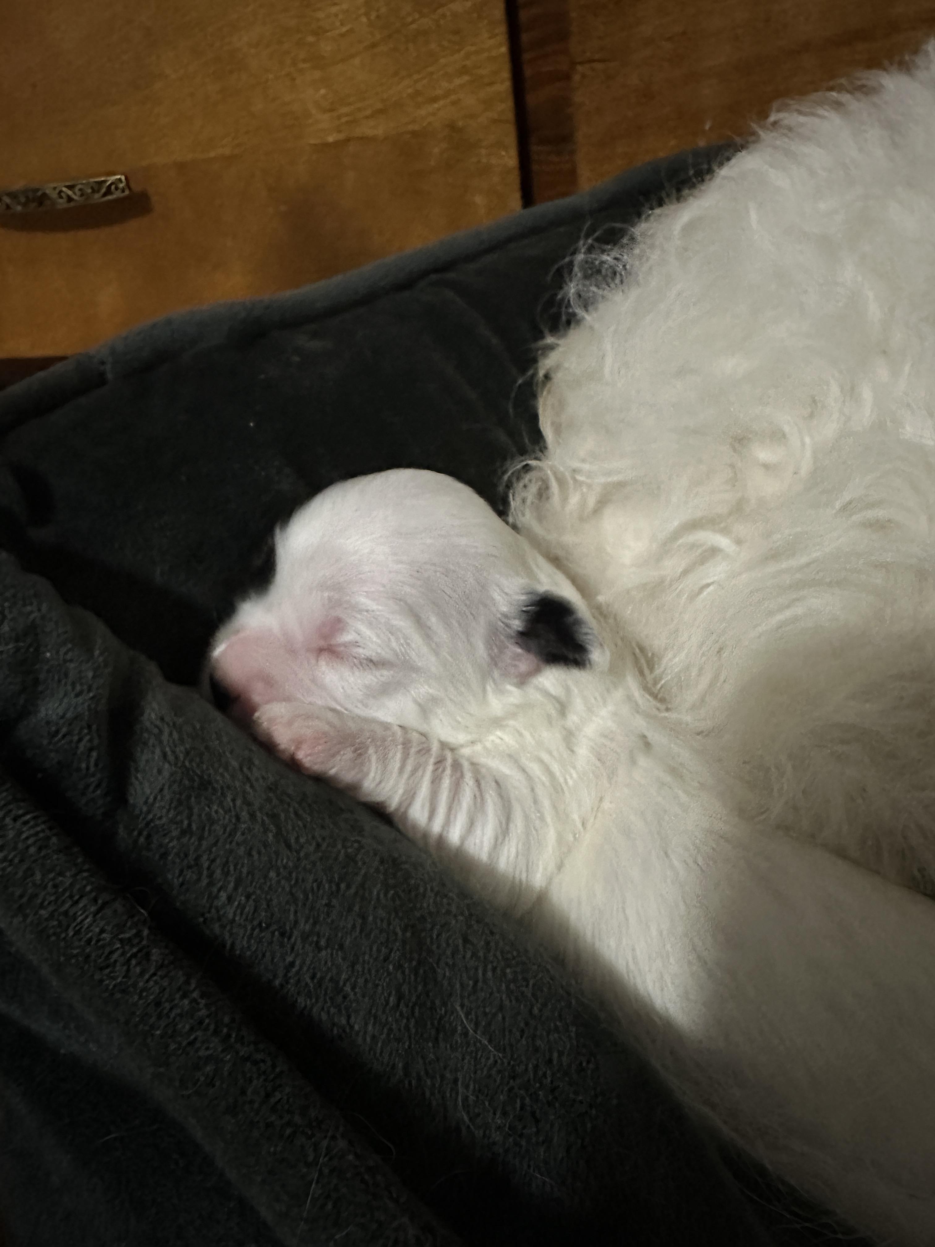 Our dogs are family first and foremost! Our breed club does extensive health and genetic testing to preserve the long-term health of the rare Coton breed. Our gorgeous stud Mando is a black and white and expect to see black and white, silver, tri-color, and mink in our lines along with the traditional white Cotons.