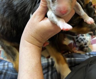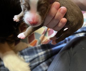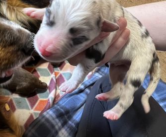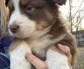 I'm Calley H., the breeder behind Urban Aussies located in Kansas. Our pups are home-raised. We put a lot of care into socializing them so they can transition easily into their new lives. We treasure each puppy in our program and give them all the attention and care that we possibly can. We work hard so our puppies can leave our home with confidence.