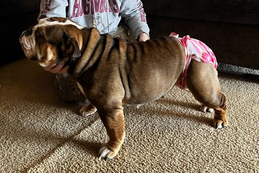 Princess is a female Bulldog. Carefully selected as a great representative of her breed, Amber decided to make her part of their program. Amber has passed Good Dog’s screening process, which involved a review of their breeding practices, environment, and the mental and physical health of their dogs.