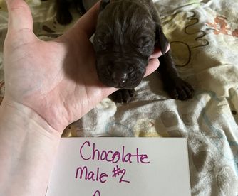 Our Bulldog puppies include brindle, fawn and white, and red and white. Great Dane puppies include blue and white, silver, chocolate and white, chocolate brindle, chocolate, blue brindle, brindle, fawn, blue, harlequin, mantle, and merle. Colors will vary depending on the parent dogs.