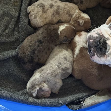 I cannot say enough wonderful things about Amber and my experience getting my English Bulldog, Tate. From the very beginning, Amber went above and beyond to make the entire process not only smooth but incredibly special. While I waited the 7 weeks for Tate to be ready, Amber kept me closely connected with regular updates, including sweet milestone moments like when Tate first opened her eyes and tried food for the first time. She also sent weekly pictures that I looked forward to and cherished—it truly made me feel like I was already part of Tate’s journey.