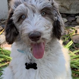 Maisie Moo is a female Sheepadoodle. Carefully selected as a great representative of her breed, Jenna decided to make her part of their program. Jenna has passed Good Dog’s screening process, which involved a review of their breeding practices, environment, and the mental and physical health of their dogs.