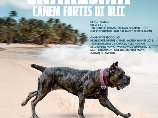 Charisma is a female Cane Corso. Carefully selected as a great representative of her breed, Jennifer decided to make her part of their program. Jennifer has passed Good Dog’s screening process, which involved a review of their breeding practices, environment, and the mental and physical health of their dogs.