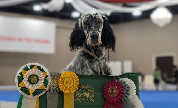 As the foundation for Urban Uplander English Setters, Unice represents the program’s core philosophy: preserving the breed’s versatility through sound structure, health, and instinct — a dog equally capable of turning heads in the show ring and working birds in the field.