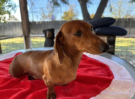 Heinrich is a male Dachshund. Carefully selected as a great representative of his breed, Angela decided to make him part of their program. Angela has passed Good Dog’s screening process, which involved a review of their breeding practices, environment, and the mental and physical health of their dogs.