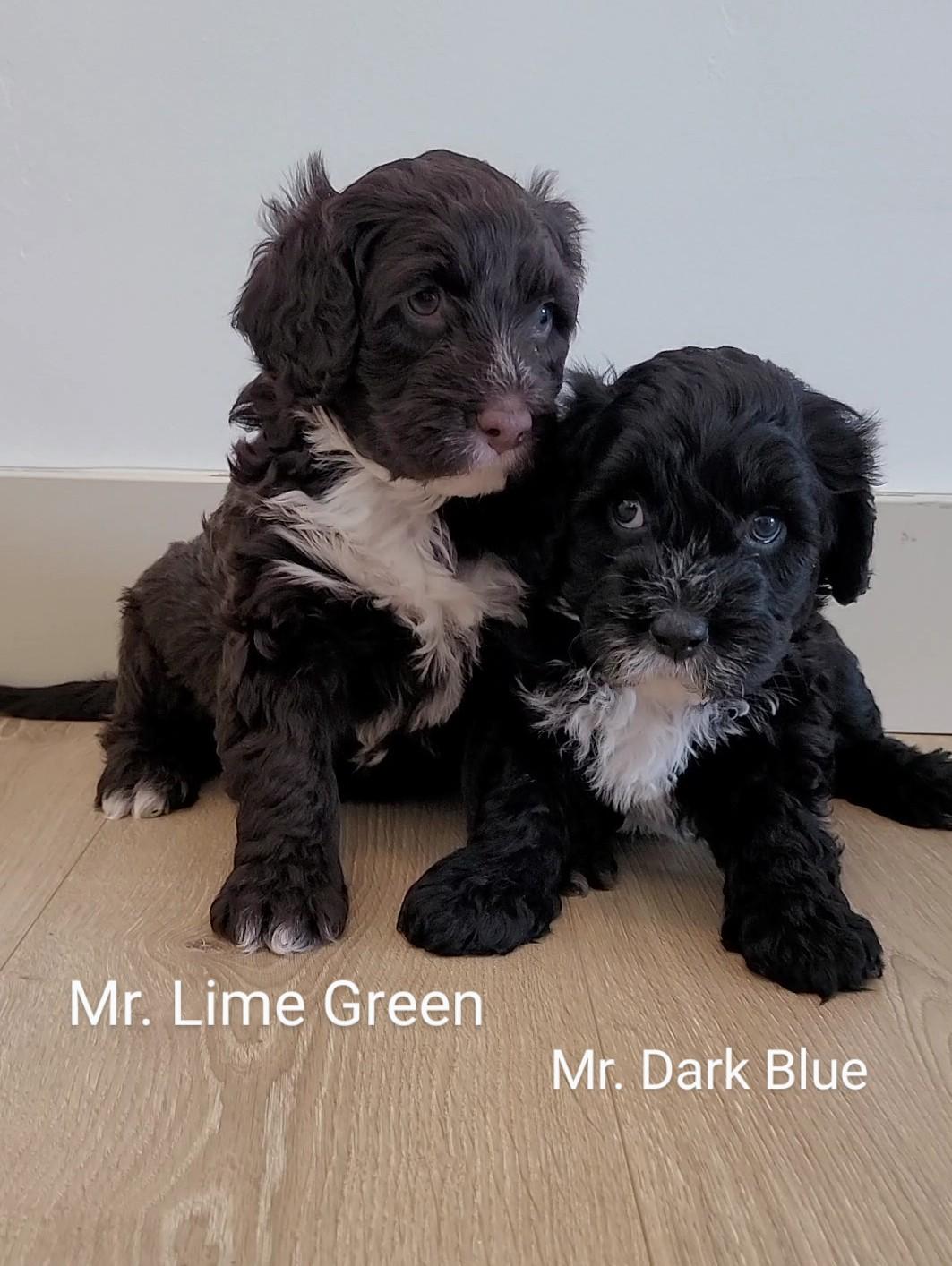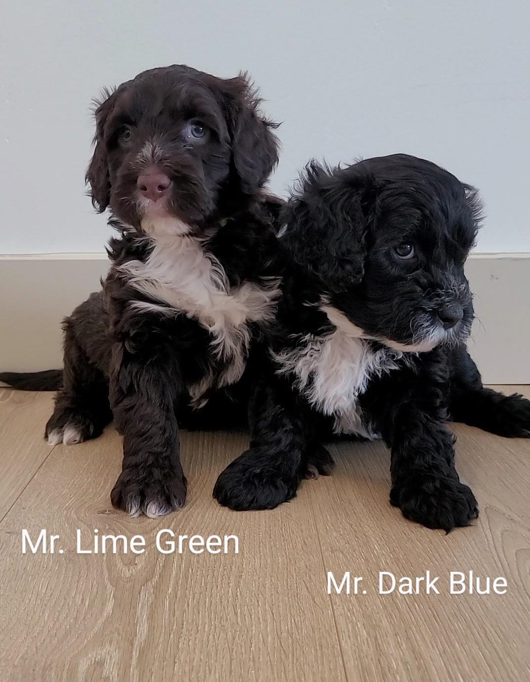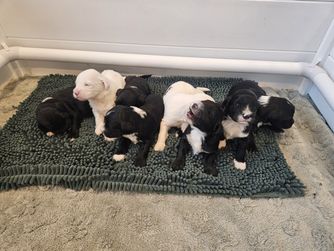 Our puppies include brown and white, black and white, black, and brown. Colors will vary depending on the parent dogs.
