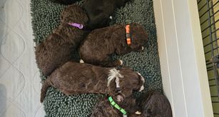 Lola is the sweetest girl. She loves to hang out and cuddle on the couch, but is ready for adventure. She lives for chasing a ball and will even jump up to catch it out of the air. She LOVES kids and is very gentle and patient with them. She is a fabulous family dog, and has the silkiest wavy hair. She is an amazing Mama.