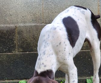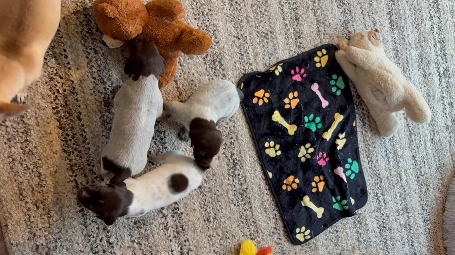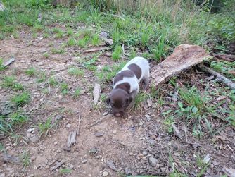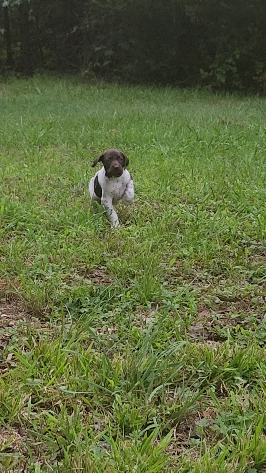 Gracie is a Missouri dame. She is a healthy 48 pound hunting pro. Points and tracks. This is her first litter and she has been a great mom. 6 healthy puppies.