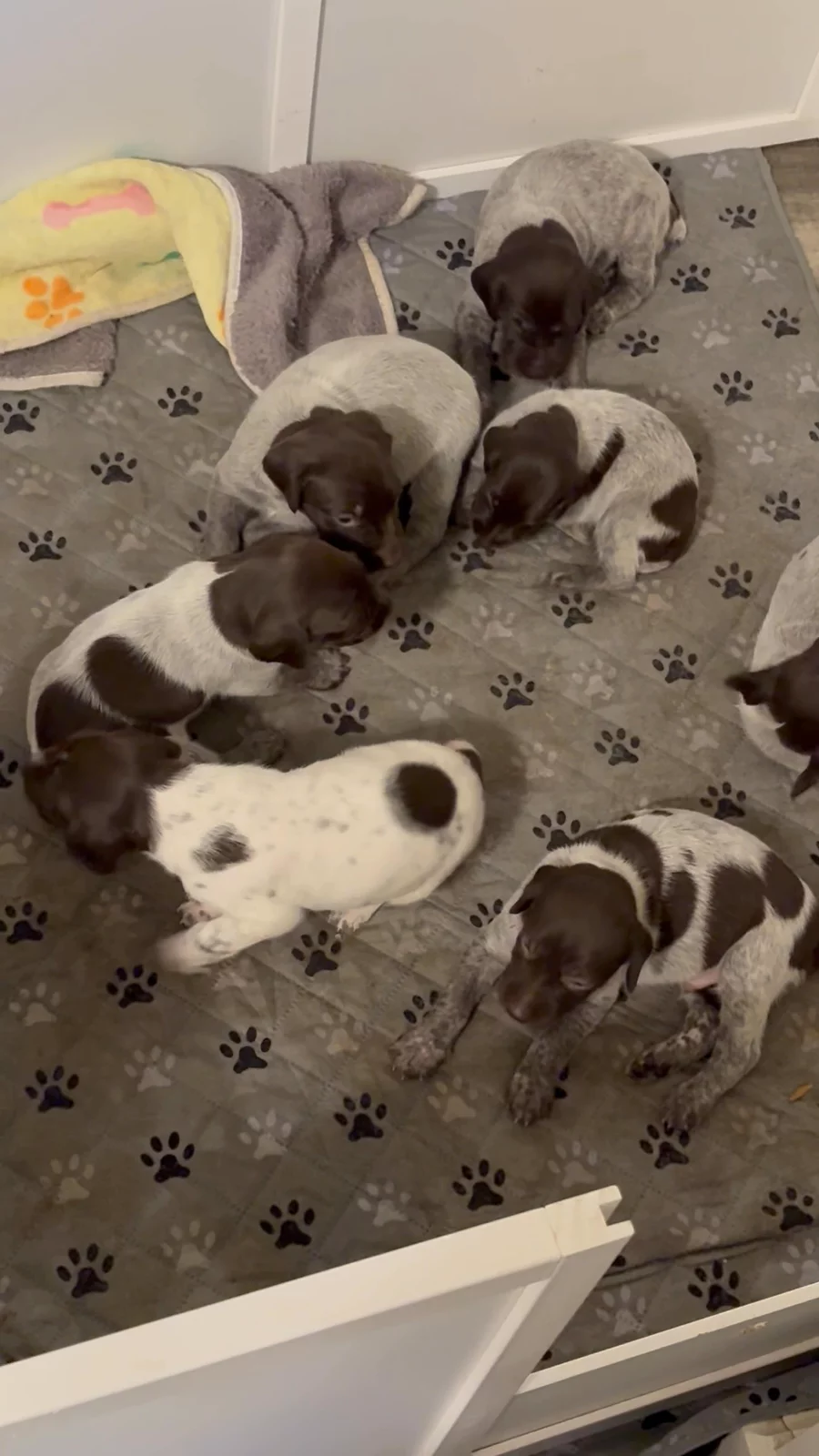Wren’s puppies are almost one month old and thriving! 🐶✨ All 8 puppies are healthy, growing quickly, and their coats are starting to come in beautifully 🤍 Their eyes are open, their dewclaws have been removed, and they are officially walking, playing, and exploring more each day 🐾 The videos show some fun playtime and early adventures, followed by very cozy nap time and puppy snuggles 😴 The photos include their sweet puppy pile after playing and a quick moment of them waking up for updated pictures 📸 They are becoming more active by the day and their personalities are already beginning to shine ✨ More updates coming soon as these sweet pups continue to grow! 🤍🐾