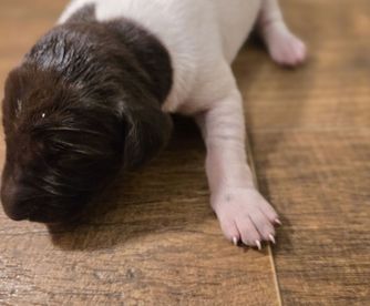 Our puppies include white and liver, liver roan, liver and white, black roan, and black. Colors will vary depending on the parent dogs.