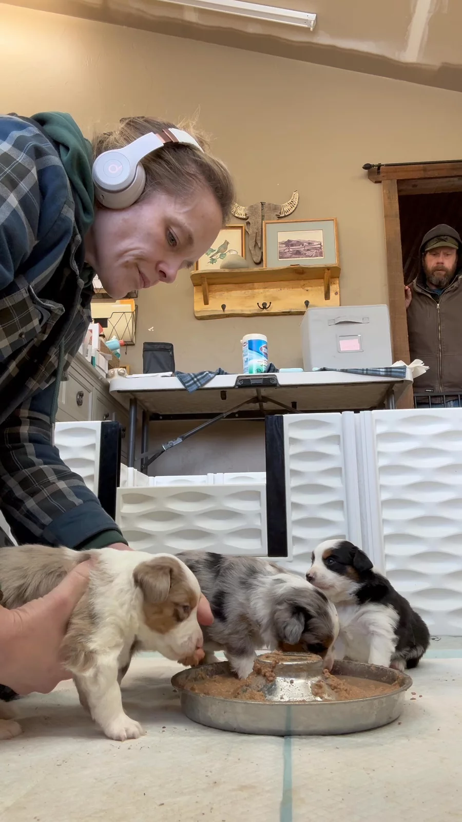 Graces pups had a small taste of wet food yesterday and all tolerated the food well. Watch their first all you can eat meal!
