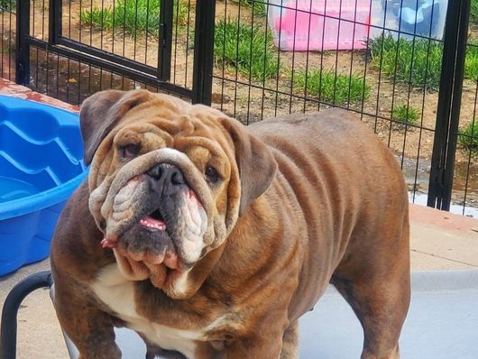 Mocha is a female Bulldog. Carefully selected as a great representative of her breed, Christina decided to make her part of their program. Christina has passed Good Dog’s screening process, which involved a review of their breeding practices, environment, and the mental and physical health of their dogs.