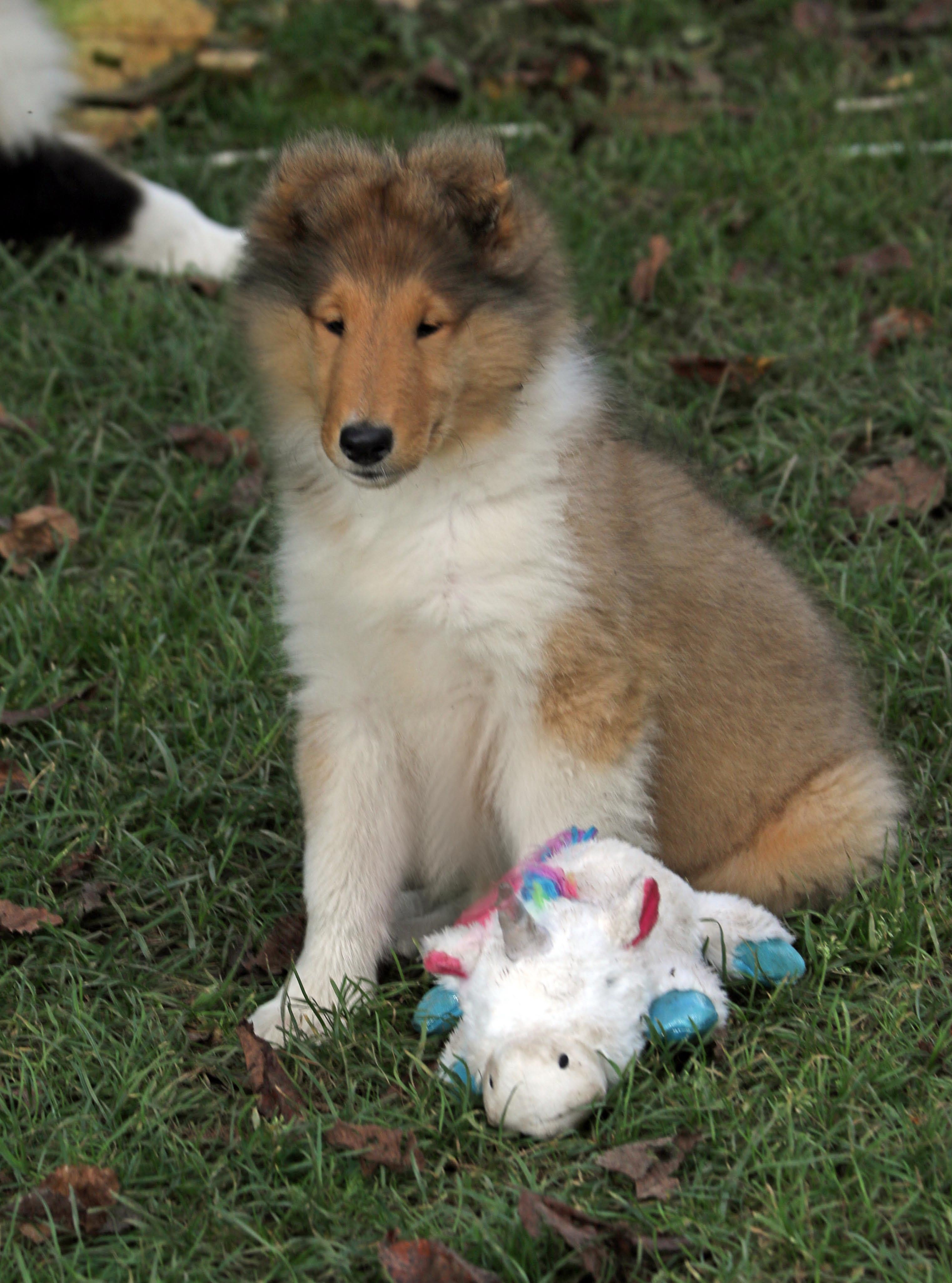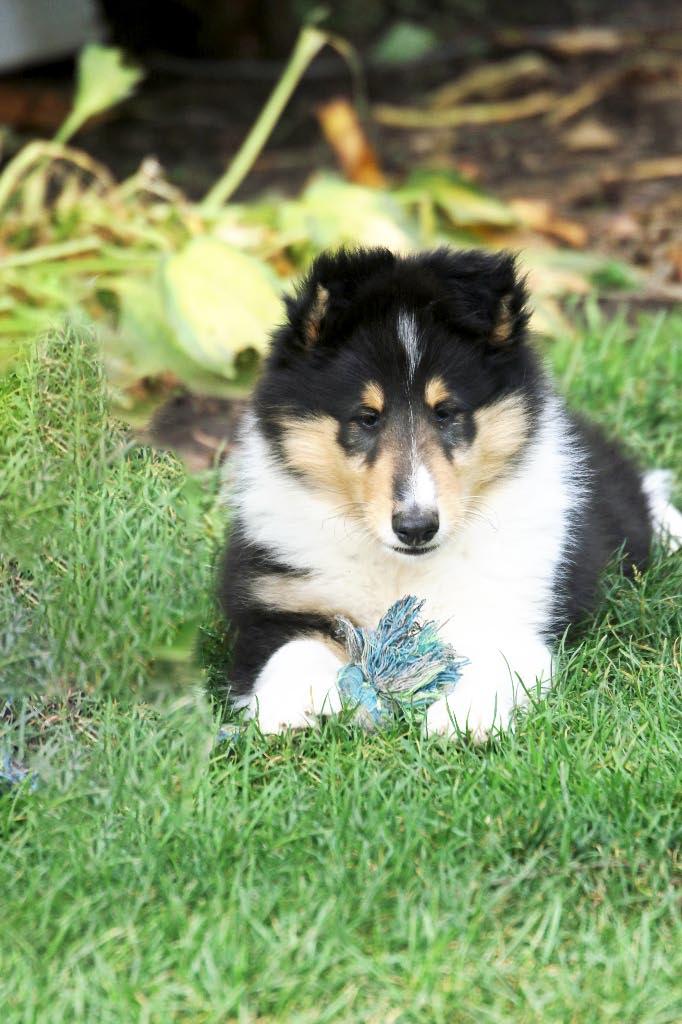 Our puppies include blue merle and white, sable and white, and black white and tan. Colors will vary depending on the parent dogs.