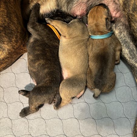 One male (brown) and female (fawn) available. Brindle male, sold