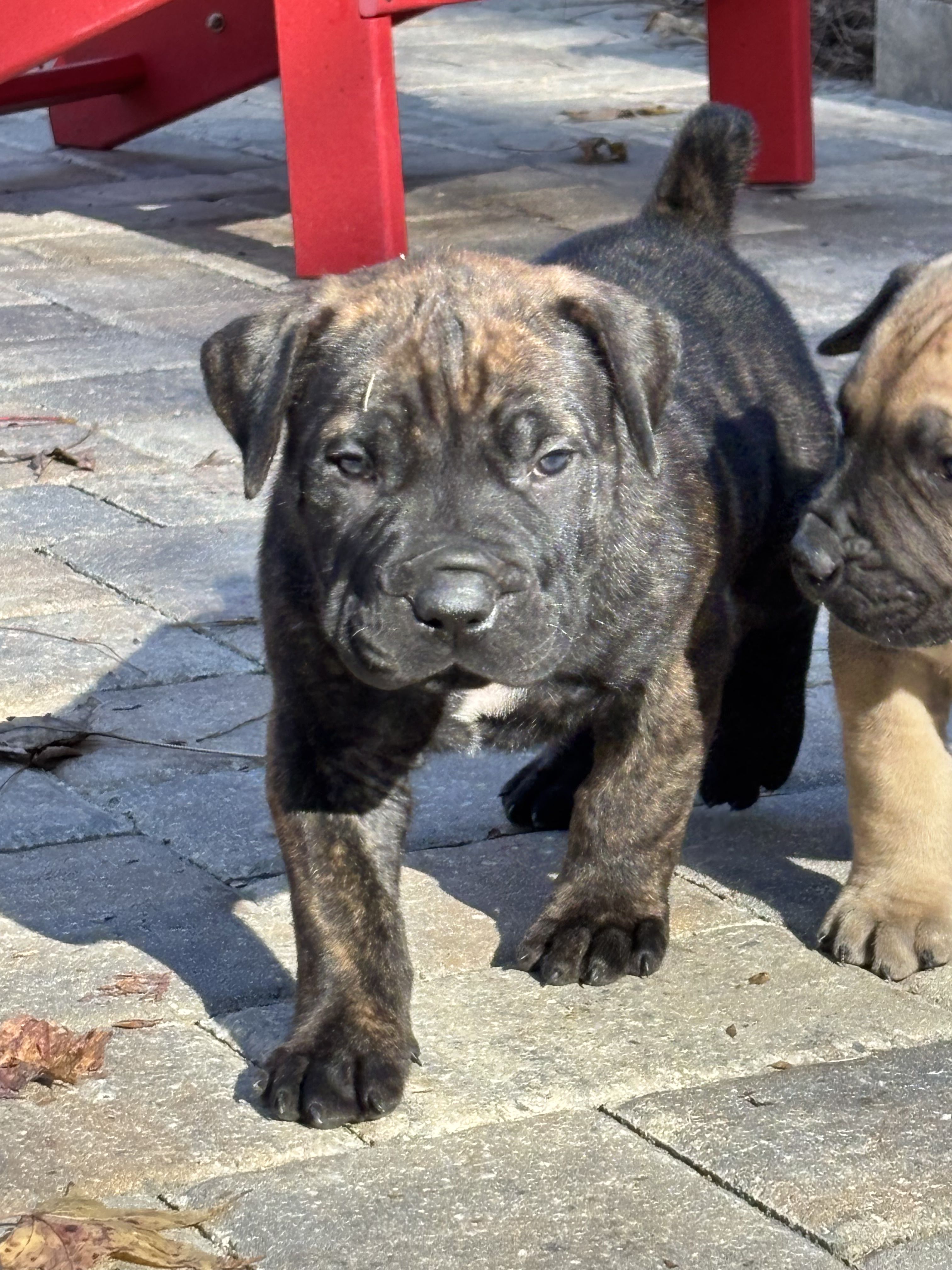 Our puppies are brindle. Colors will vary depending on the parent dogs.