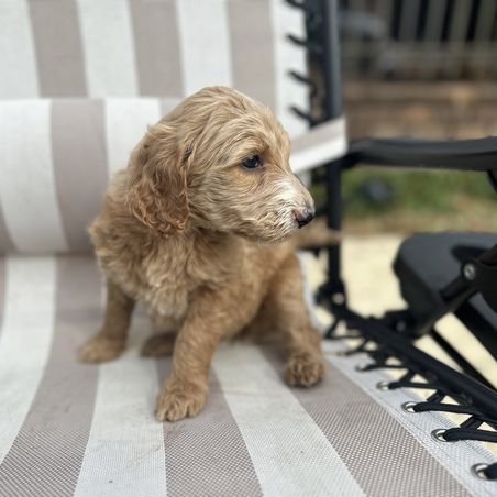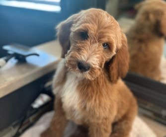 We have always loved dogs of any kind! When I saw my first red Goldendoodle I knew I had to have one. After searching in our area for that perfect color and temperament without success, and then driving over 3 hours one way to pick one up, I knew that I had to start my own program. My kids are involved in the process from the beginning to the end and love it all!