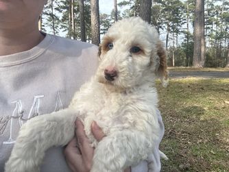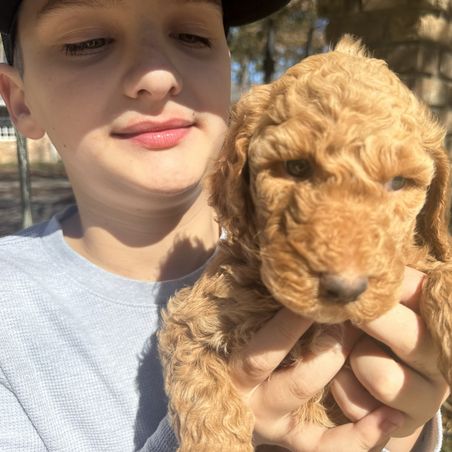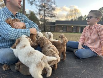 I'm Brandie S., the breeder behind Valentine Kennels located in Bogue Chitto, MS. We have the best Doodles on earth! They are social and so loving. Whether it's inside, or a day on the lake, these pups shine! Our pups are bred with quality and family in mind. We specialize in the most beautiful colors you will ever see: solid red, red and white parti, and apricot. We have a large family and all of our pups are socialized with other animals and people. We are so proud of our dogs and their puppies!