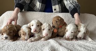 Our puppies include cream, apricot, red, and parti. Colors will vary depending on the parent dogs.