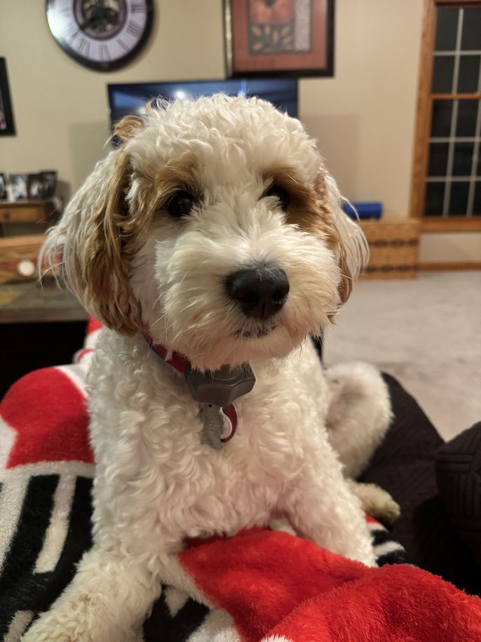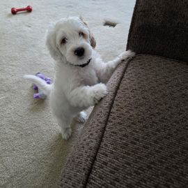 Hope is a very sweet, social and loving mini Goldendoodle. She loves playing fetch with her frisbee and tennis ball, as well as taking walks either our standard Goldendoodles. She is very smart and loves people adult and children.