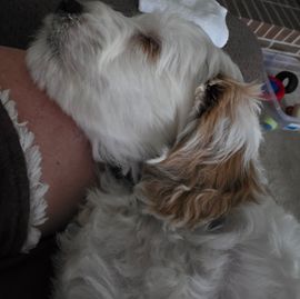 Michelle and Christopher King took little Boo ( now Griffin) home tonight to their hom in Strongsville, Ohio. He joins their little mini Berniedoodle Annie who I’m sure will become his bff. He felt so safe and relaxed that he fell asking Michell’s arms.