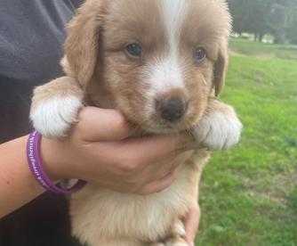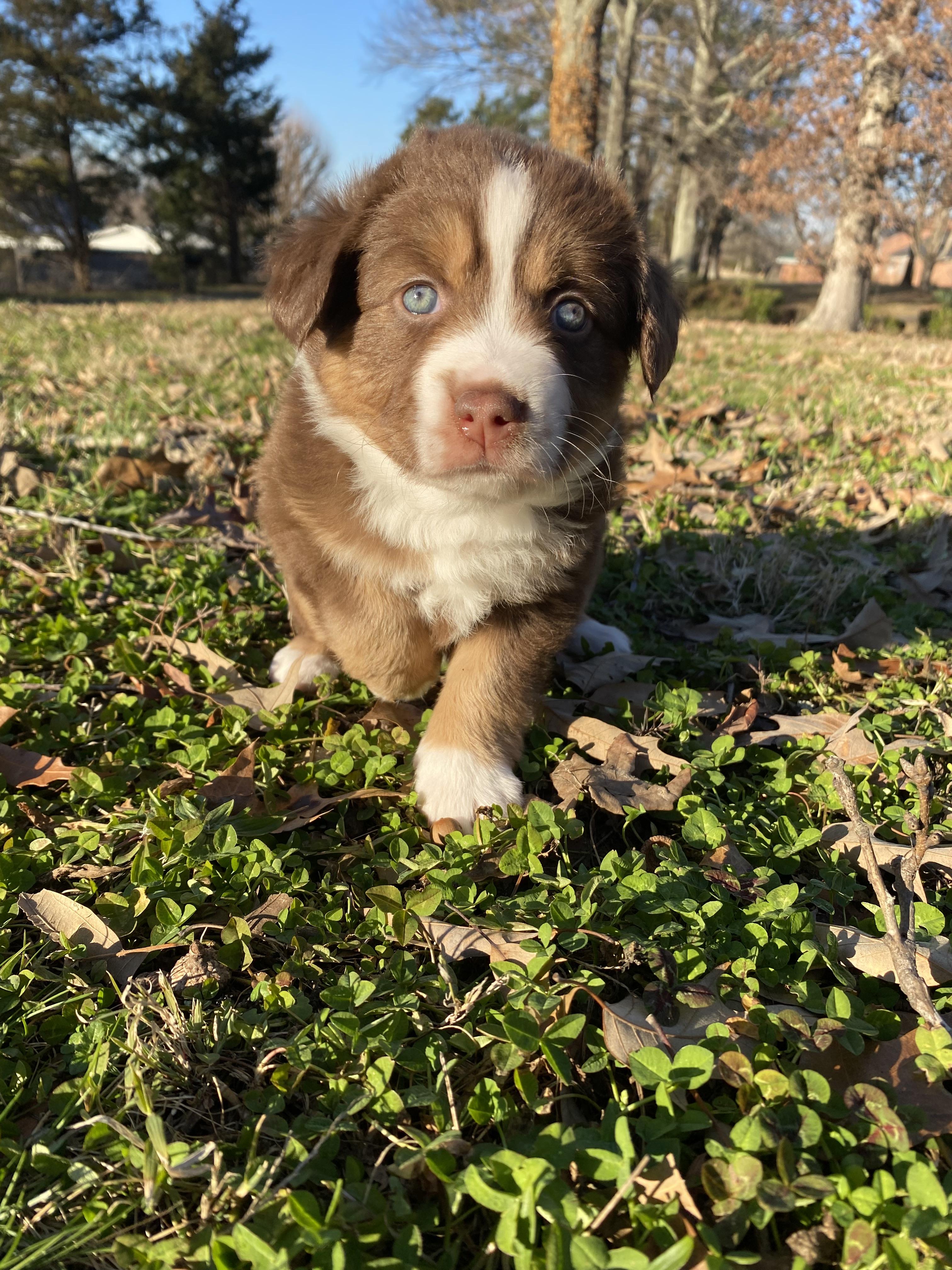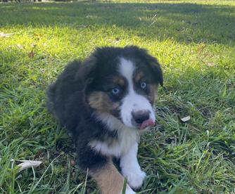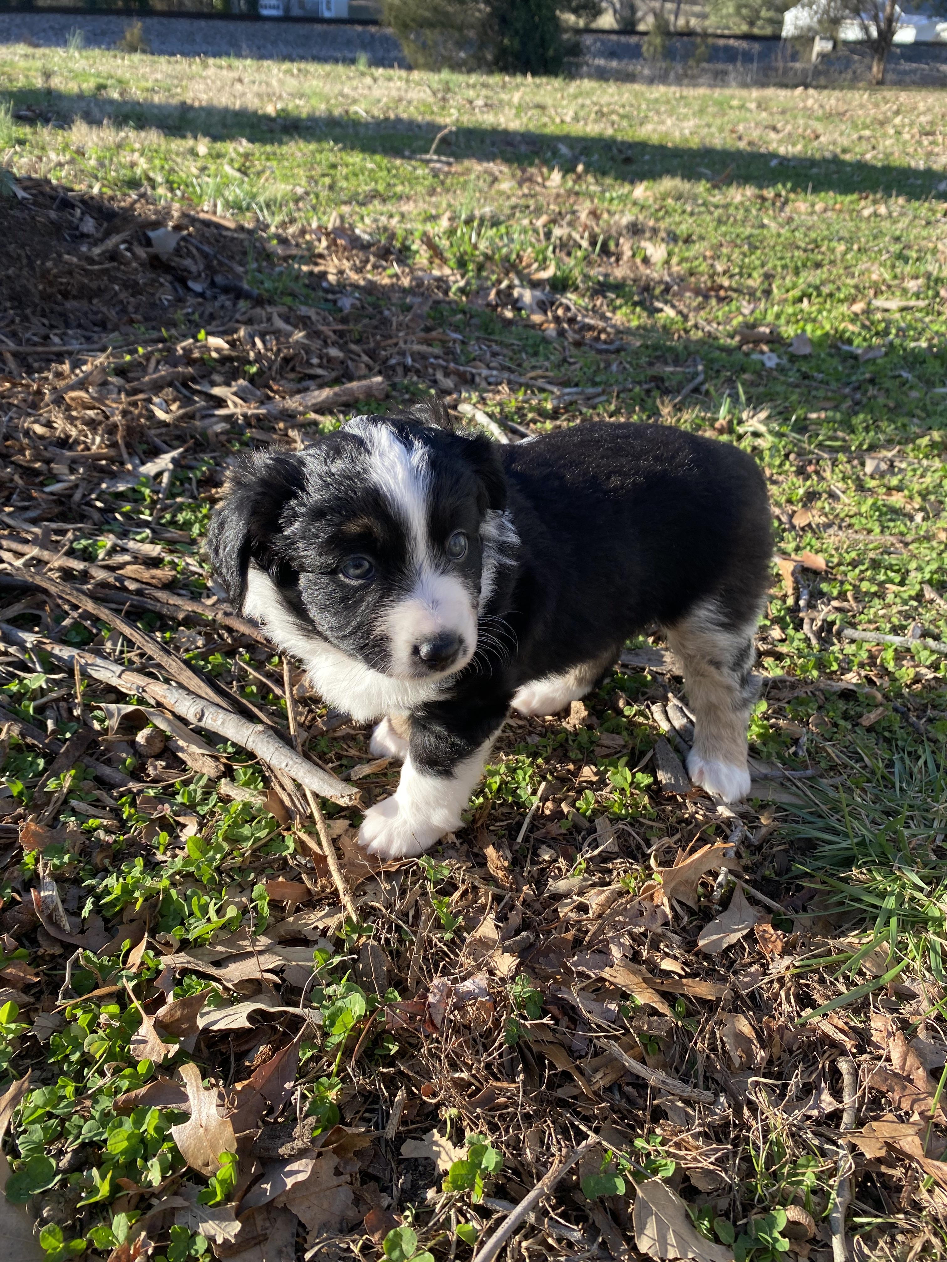 Our puppies include red tri-color, black tri, and blue merle. Colors will vary depending on the parent dogs.