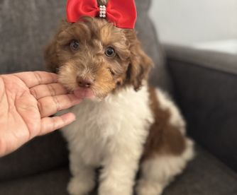 We had such a great experience working with Blanca Stella to find our beautiful mini Aussie doodle! From start to finish, Blanca made the entire process so easy and stress-free. She guided us every step of the way, answered all of our questions, and provided helpful information to prepare us for bringing our puppy home. We especially loved that she kept us updated by sending us pictures of our new puppy — it made the wait so exciting and special. When we picked her up, Blanca also provided great advice and tips to help us get started on the right foot. We are so happy with our new puppy and so thankful for Blanca’s exceptional service. Highly recommend her to anyone looking for a quality breeder who truly cares!