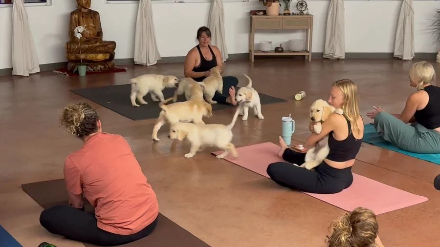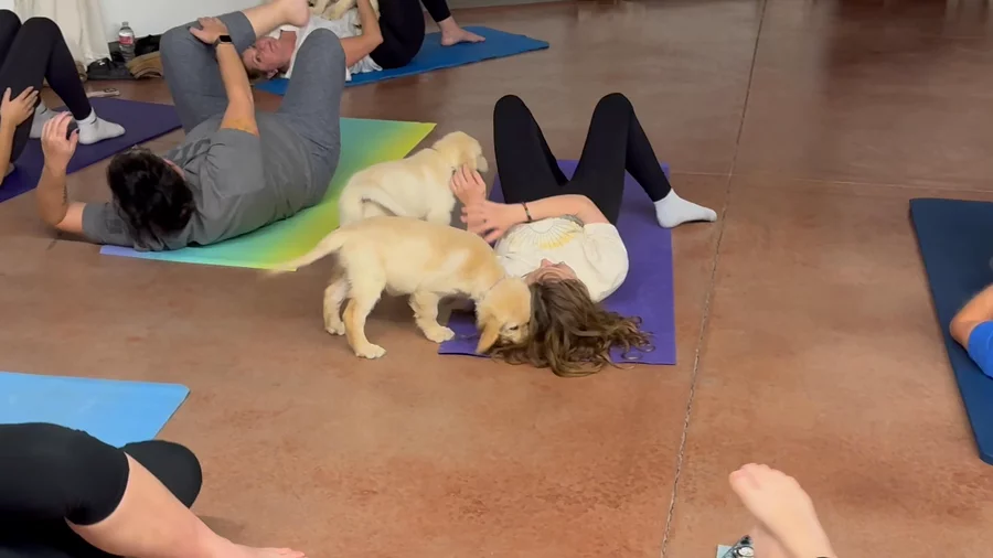 Puppy yoga!! Day 1 for some socialization and human interaction. Day 2 tomorrow!