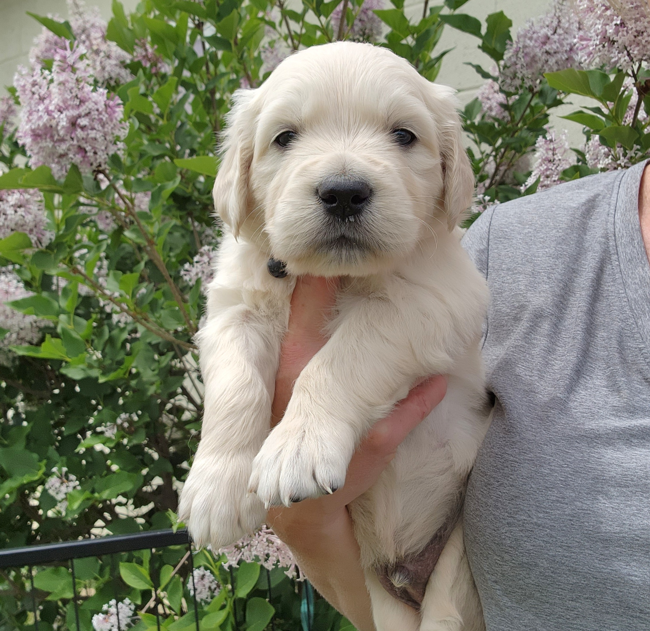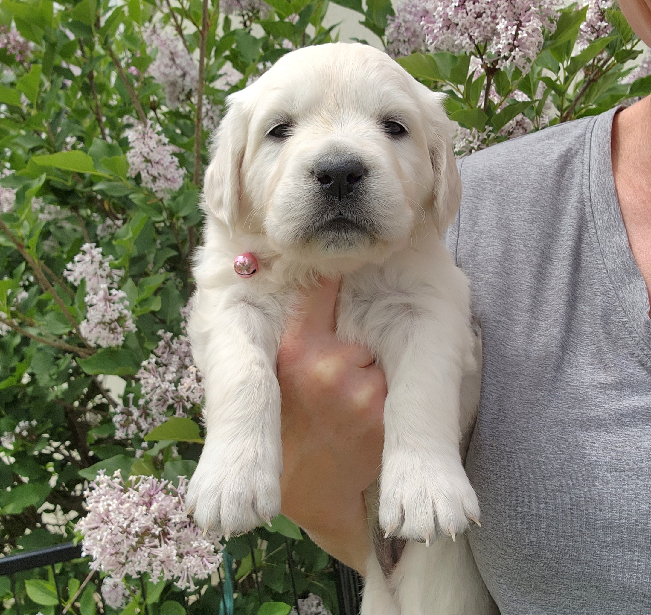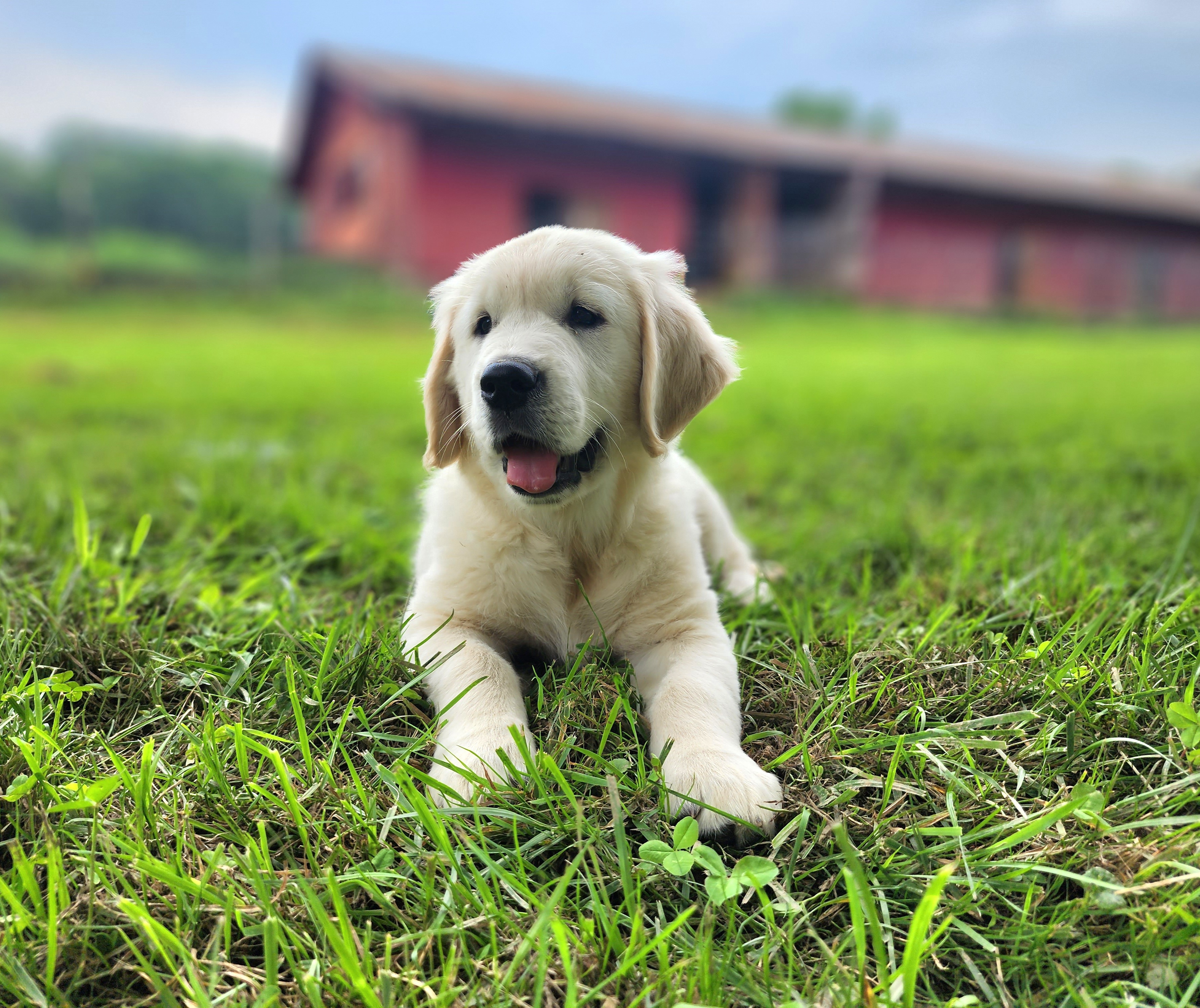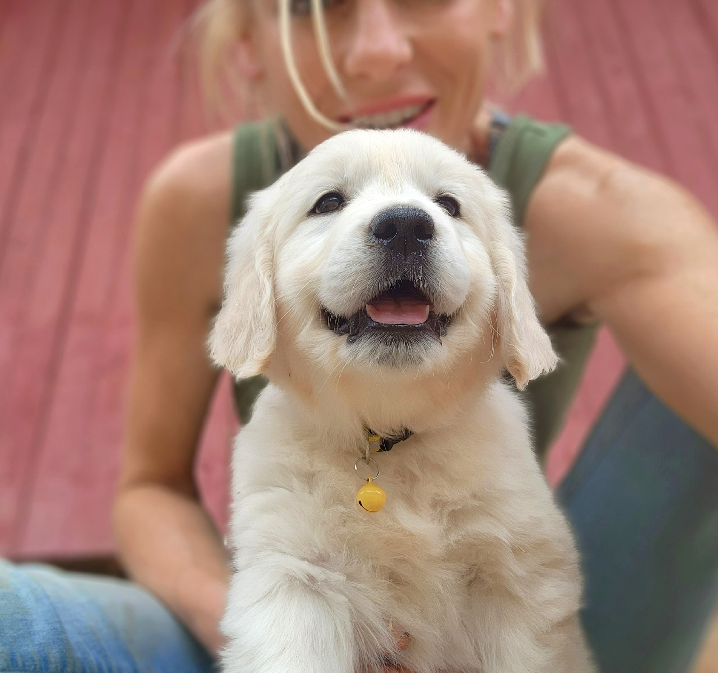 I grew up on a farm riding horses and playing with the adorable Golden puppies my mom raised so naturally fell in love with the breed.