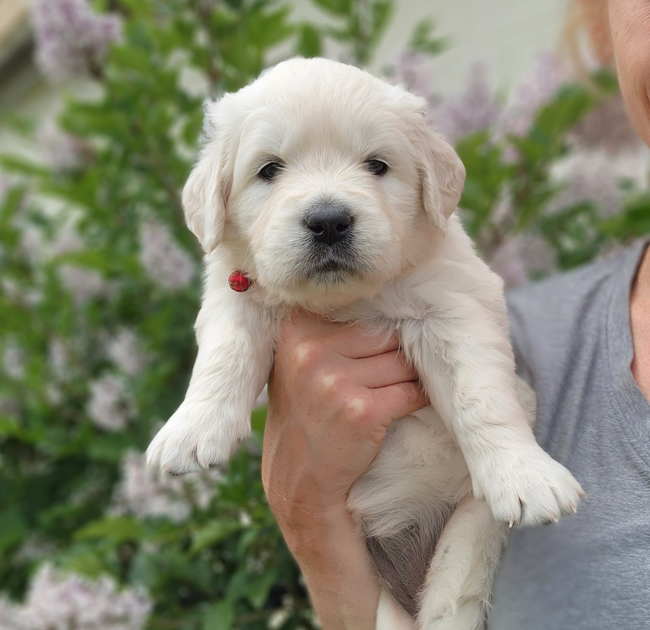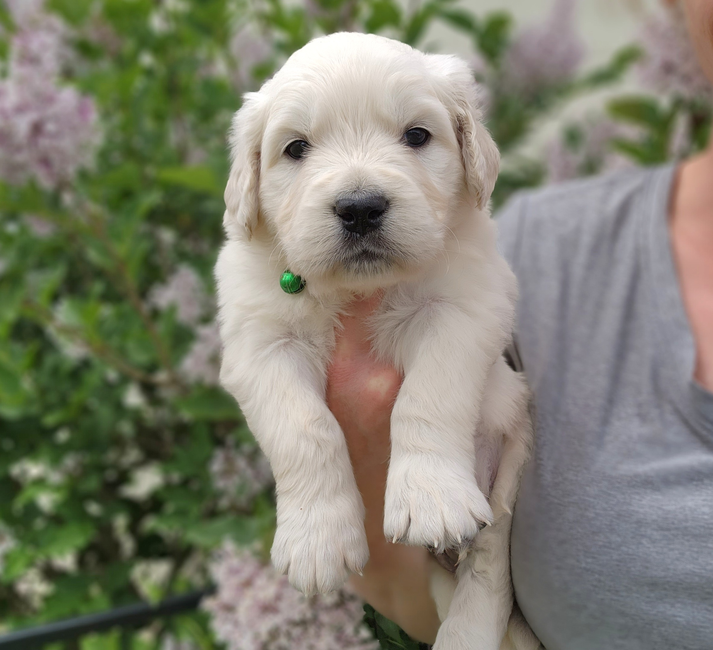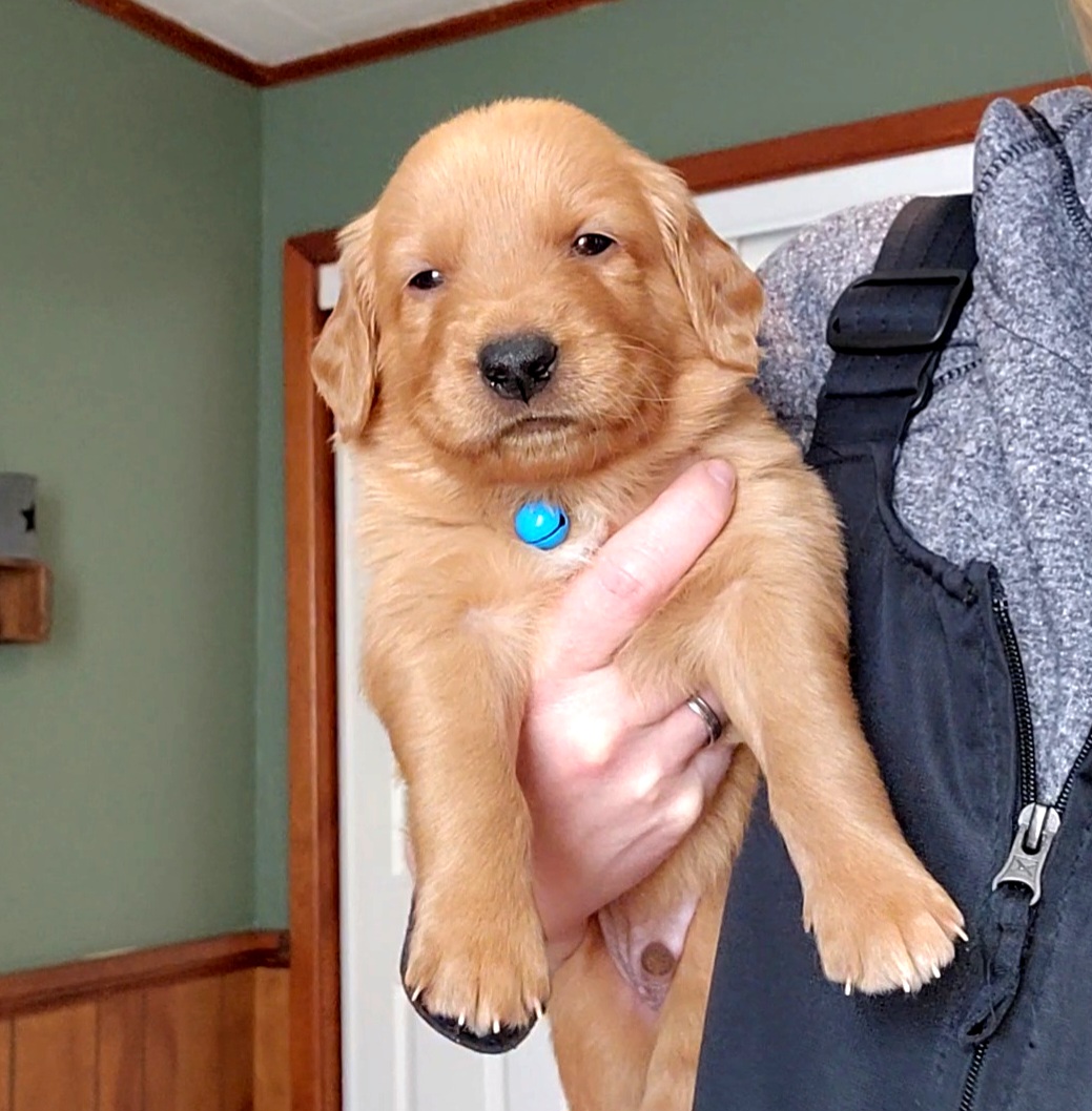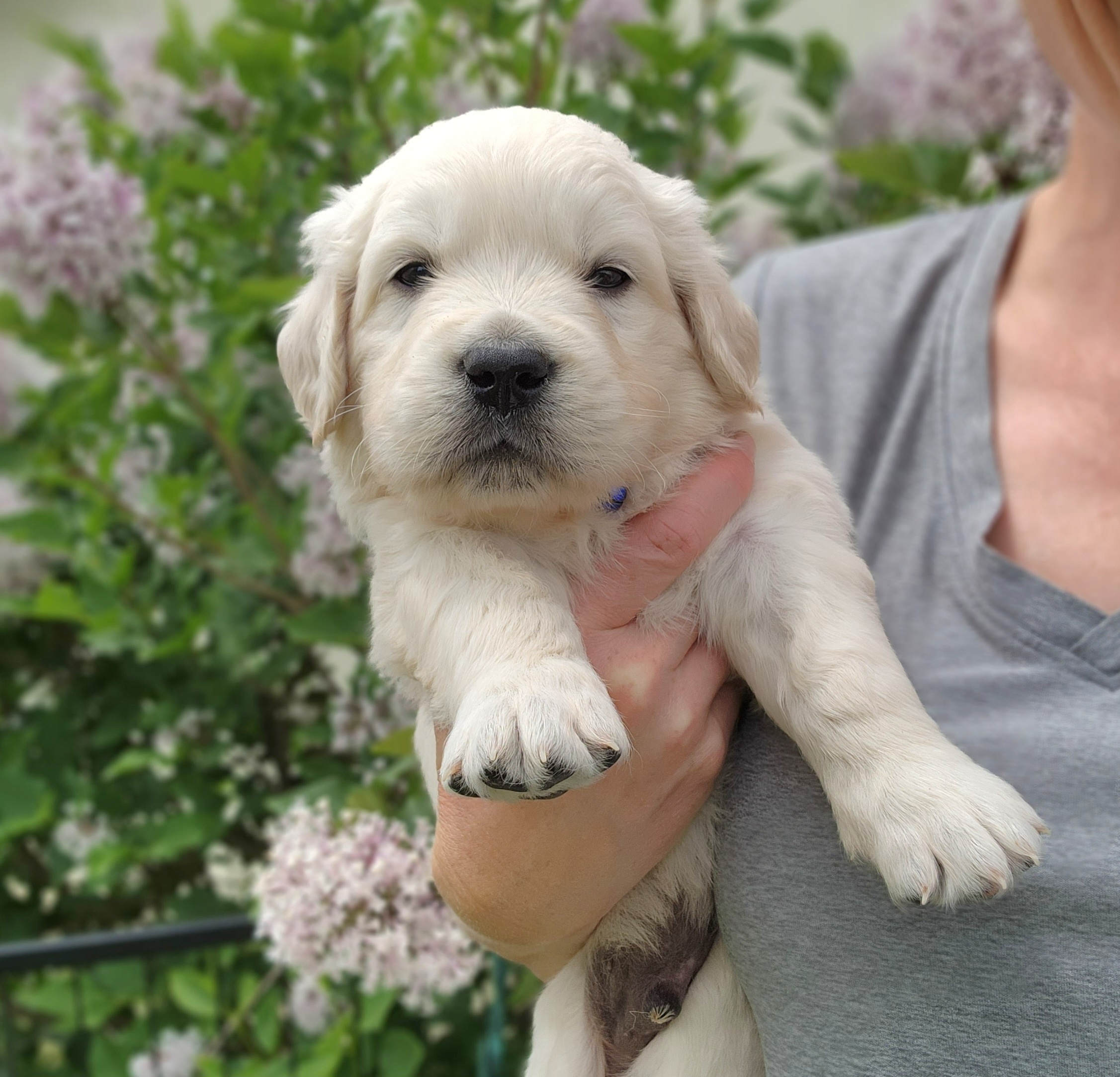 I grew up on a farm riding horses and playing with the adorable Golden puppies my mom raised so naturally fell in love with the breed.
