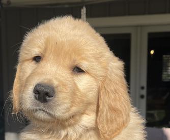 Our Goldendoodle puppies include cream, apricot, chocolate, and phantom. Golden Retriever puppies include golden and light golden. Colors will vary depending on the parent dogs.