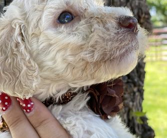 Lennie is a male Poodle. Carefully selected as a great representative of his breed, Susen decided to make him part of their program. Susen has passed Good Dog’s screening process, which involved a review of their breeding practices, environment, and the mental and physical health of their dogs.