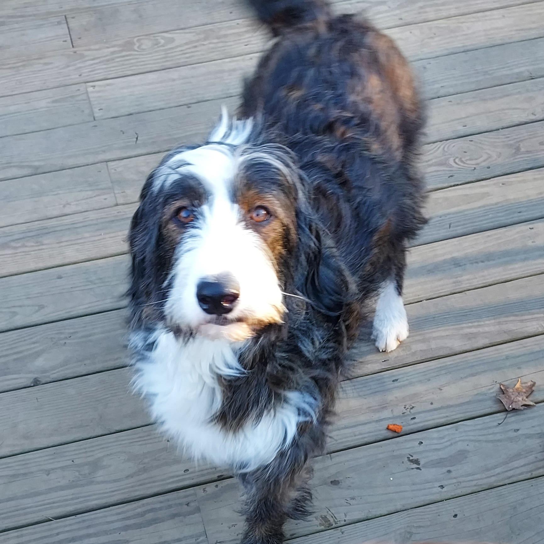 Harper is a female Bernedoodle. Carefully selected as a great representative of her breed, Earle decided to make her part of their program. Earle has passed Good Dog’s screening process, which involved a review of their breeding practices, environment, and the mental and physical health of their dogs.